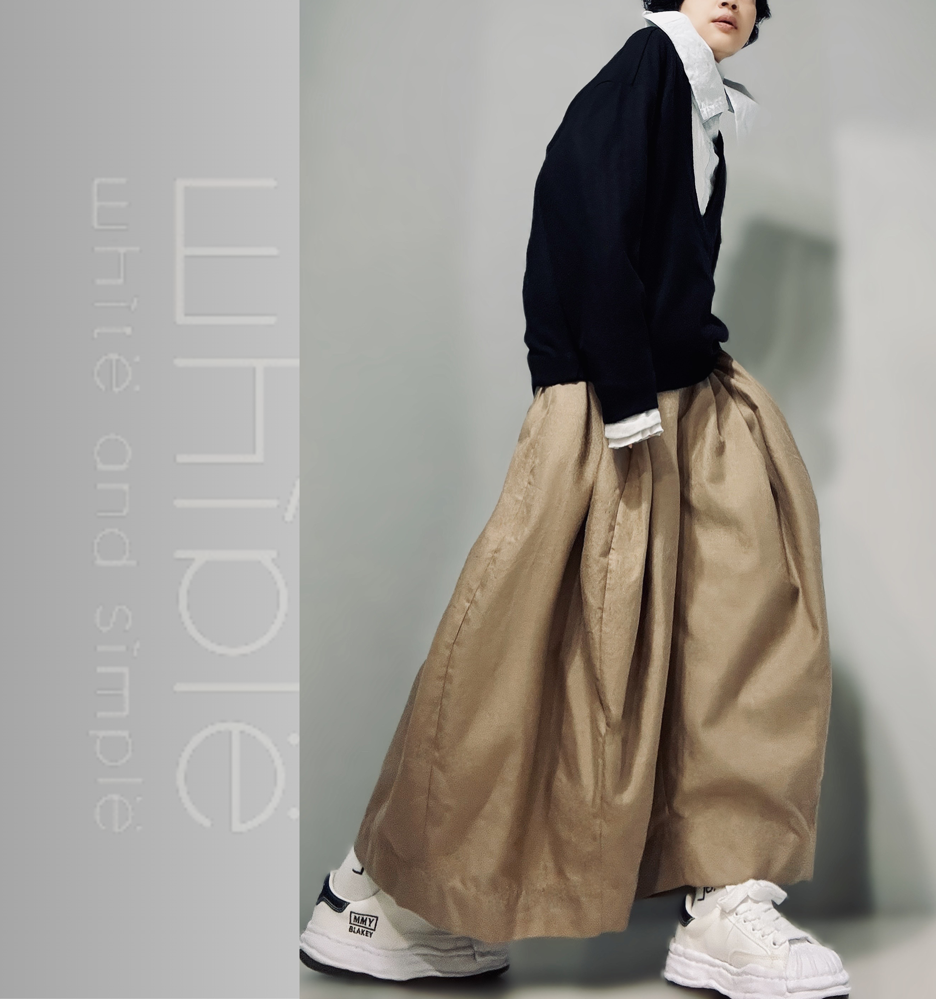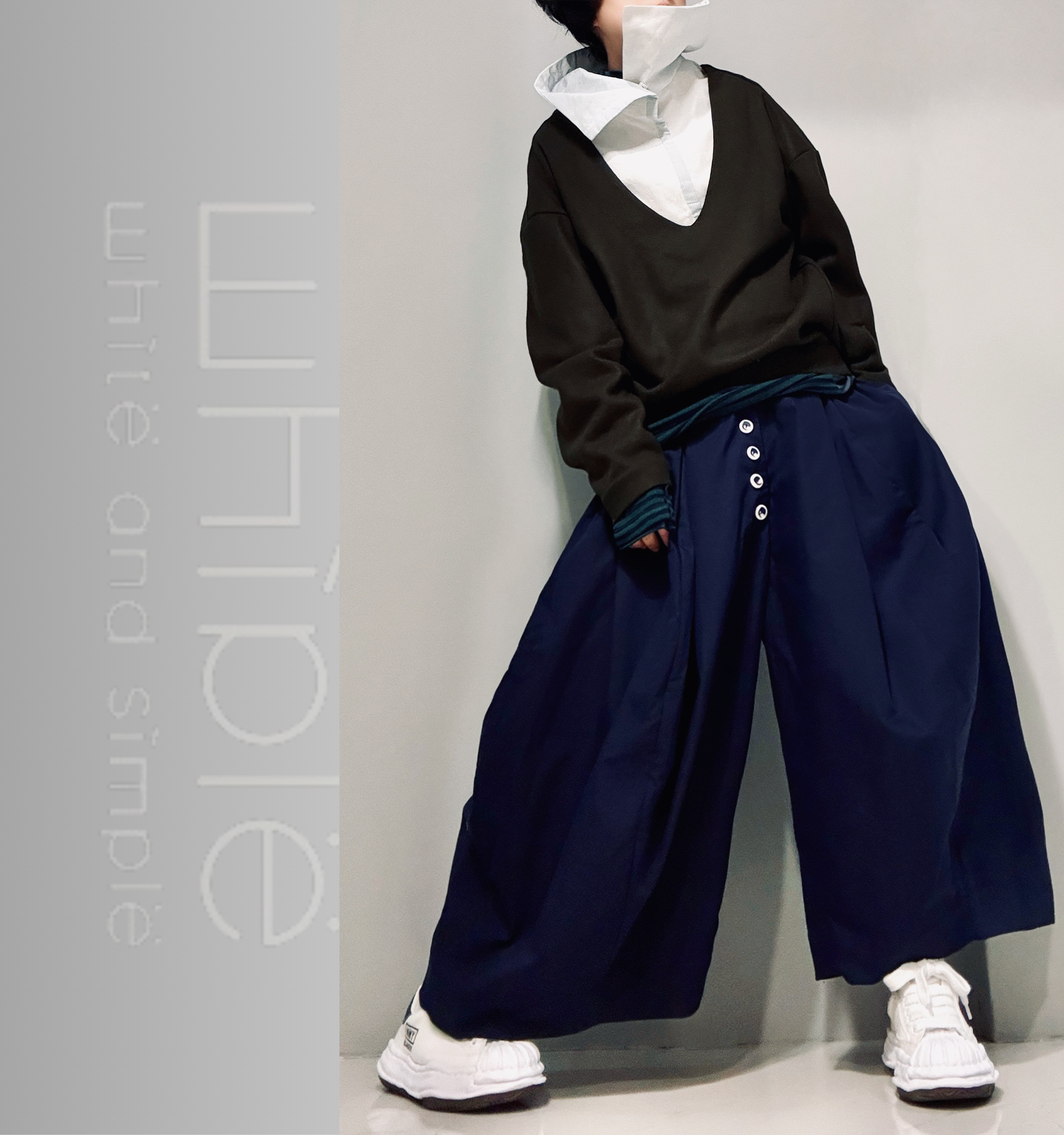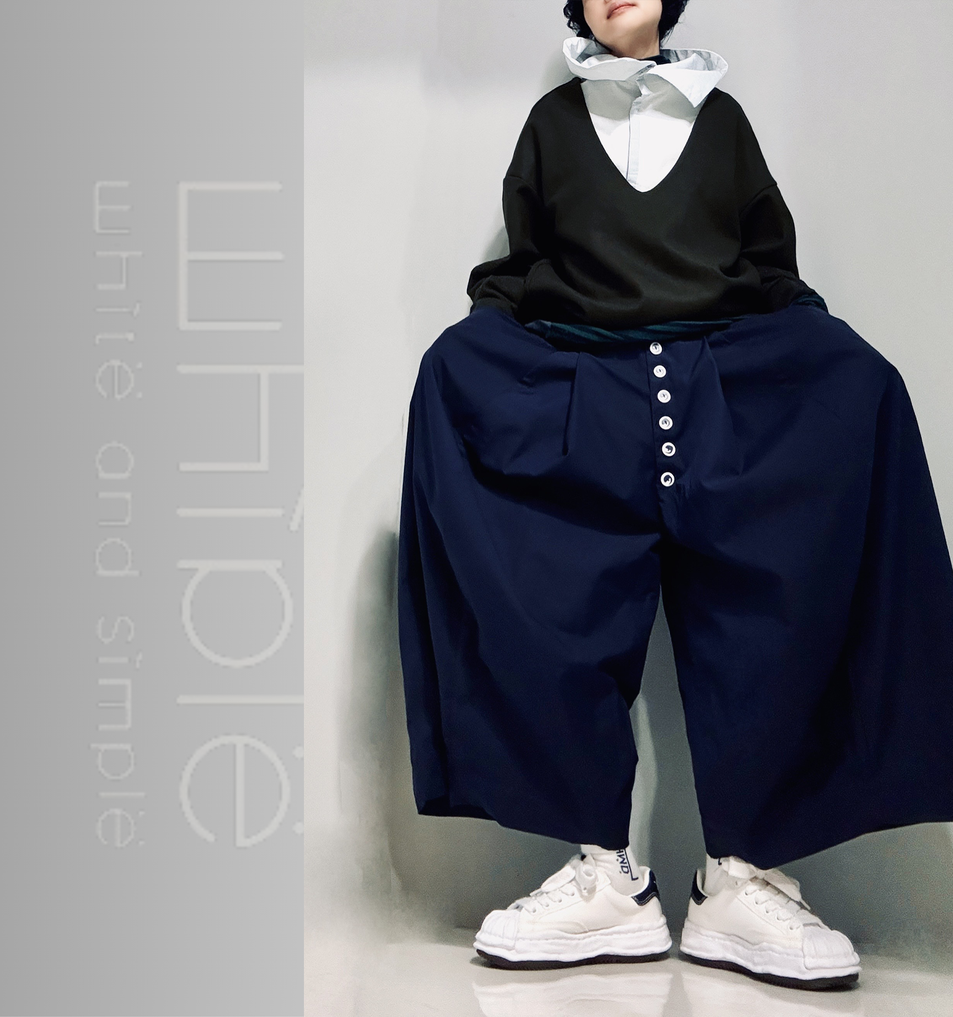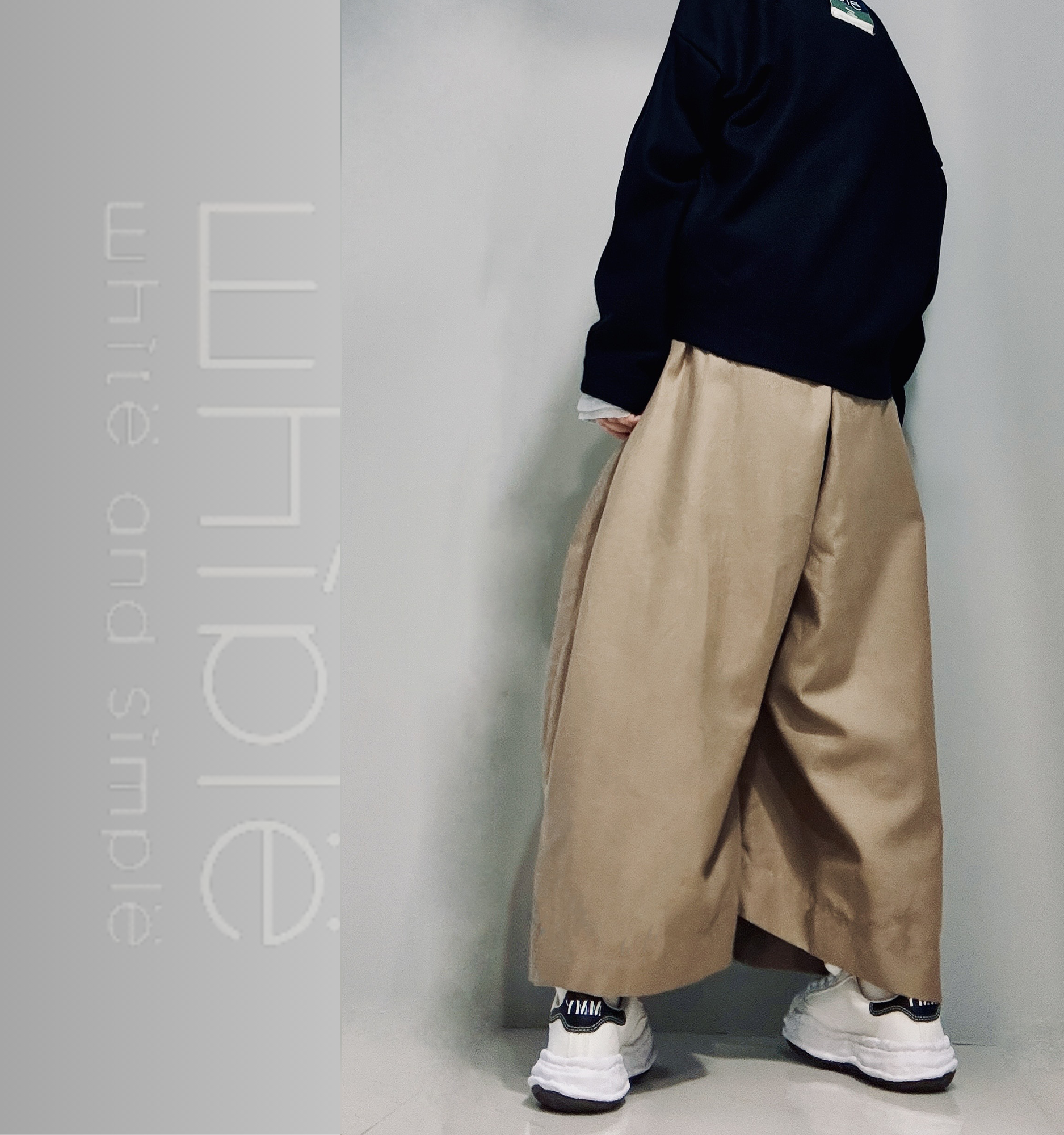 立體剪裁的超大寬褲,看似平凡簡單卻有極大化的包容力,搭配不同的上衣都能展現不同的特質,
