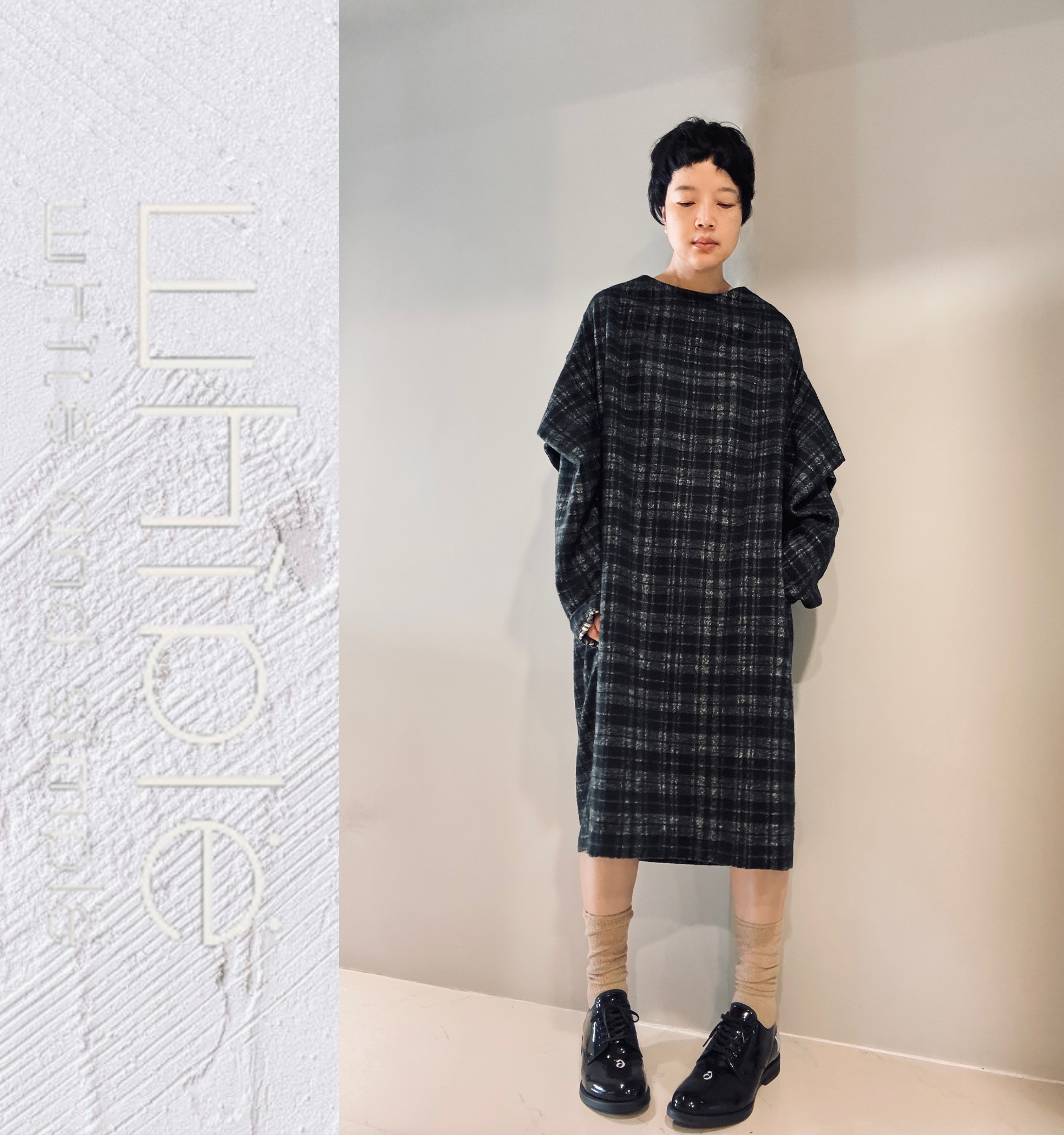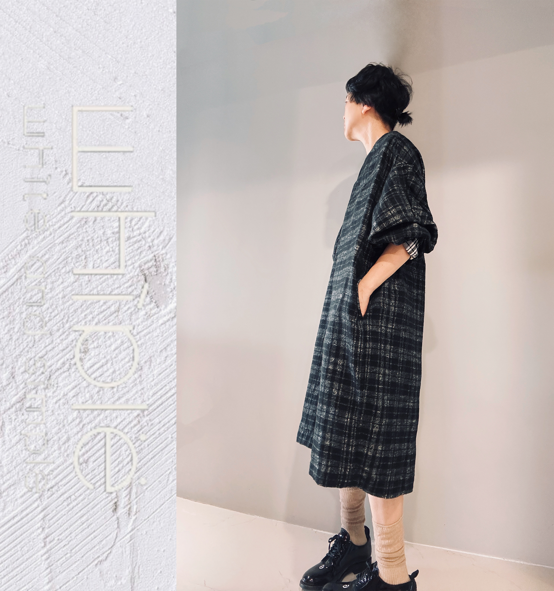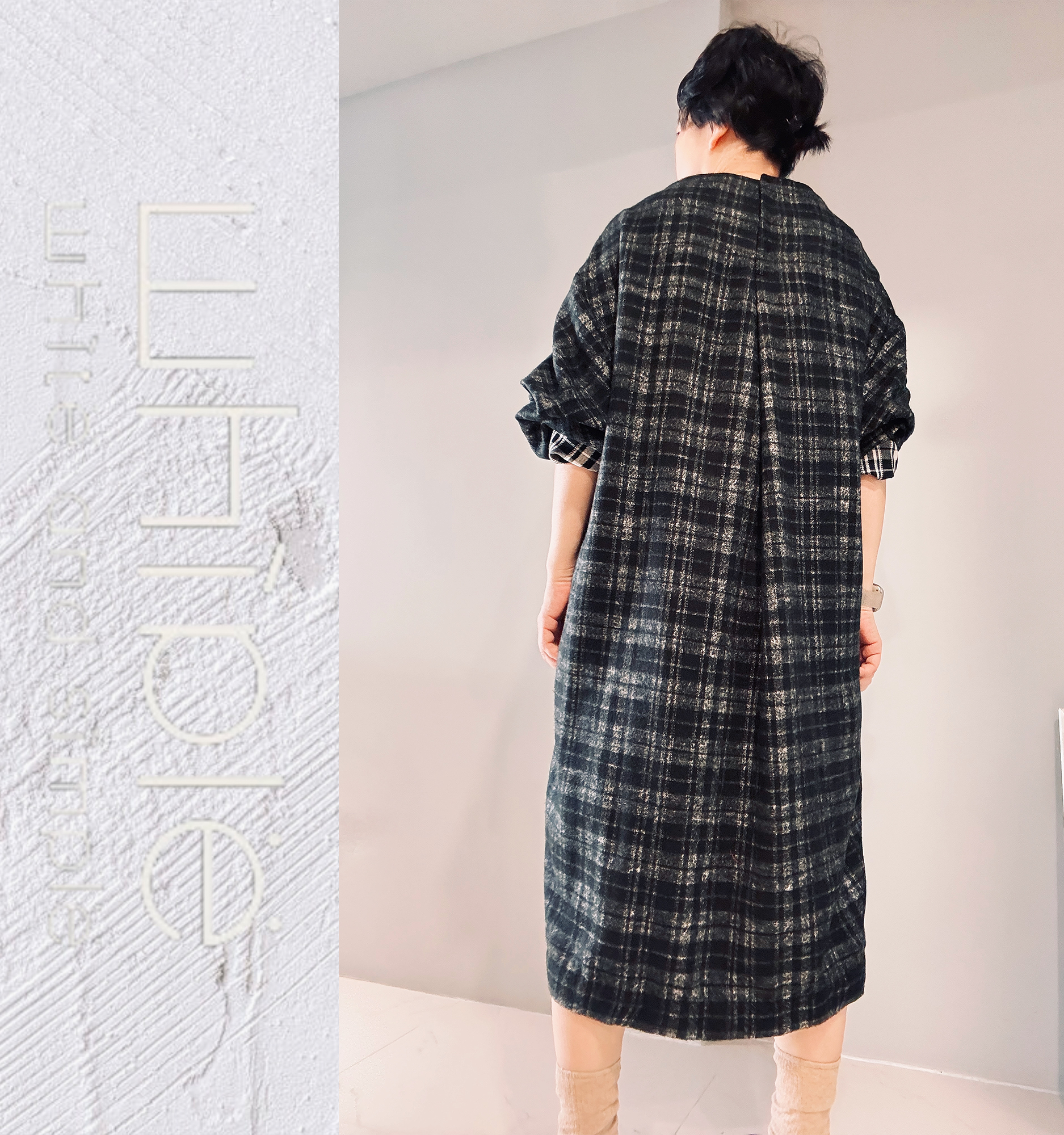 袖子立體剪裁,身型線條簡單俐落,可可色系雙色交織羊毛與黑米格子交織羊毛高質感滿滿,2色提供選擇。
