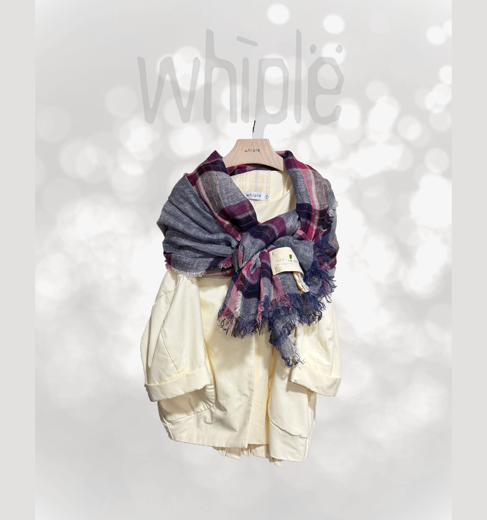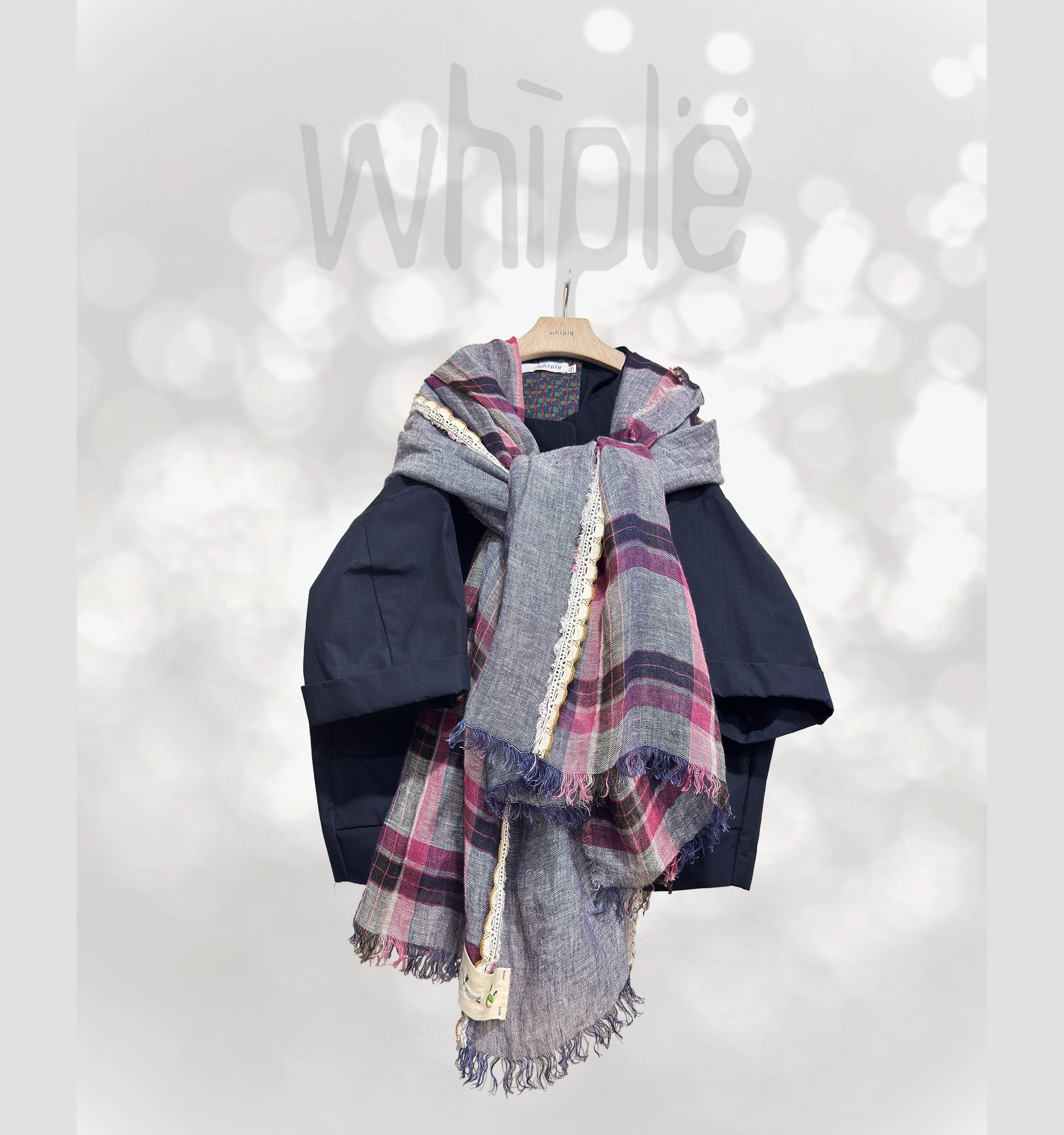 清爽薄透感的亞麻材質,柔軟舒適,大大的彩格交織,細緻的蕾絲織帶伴隨其中。