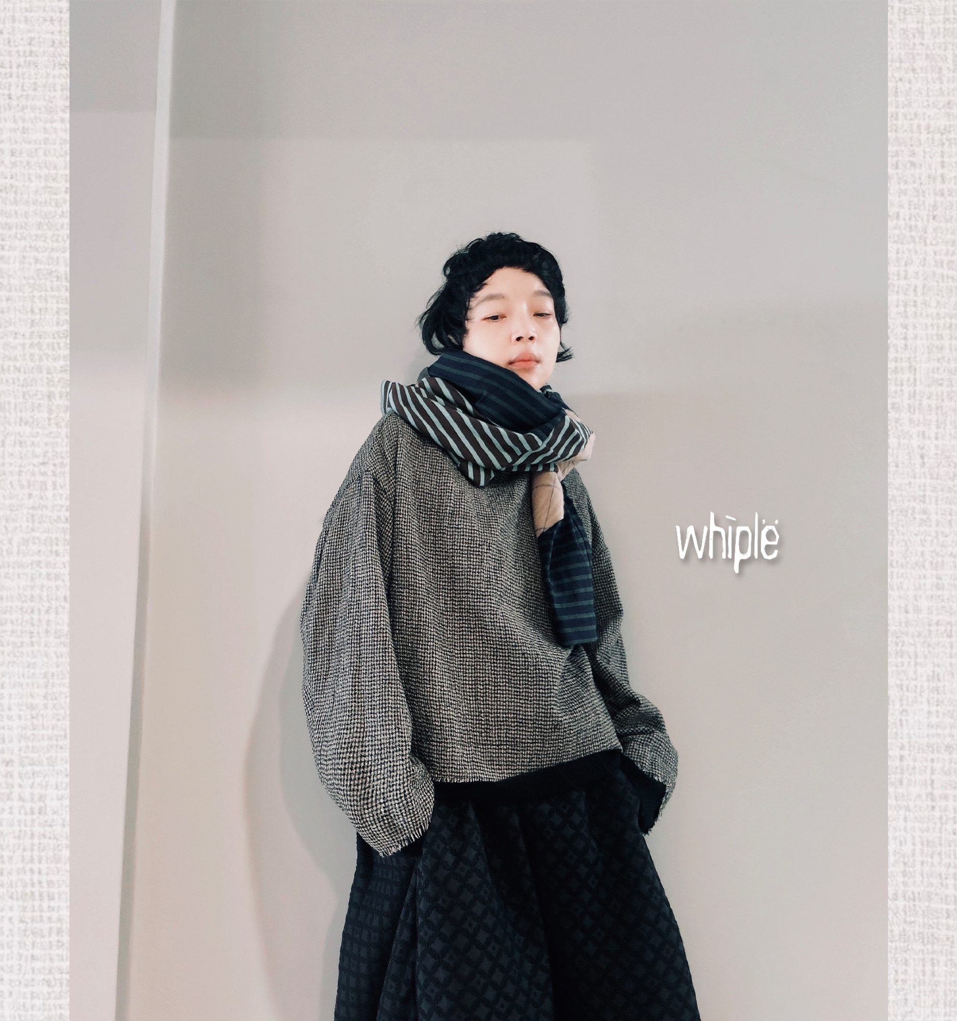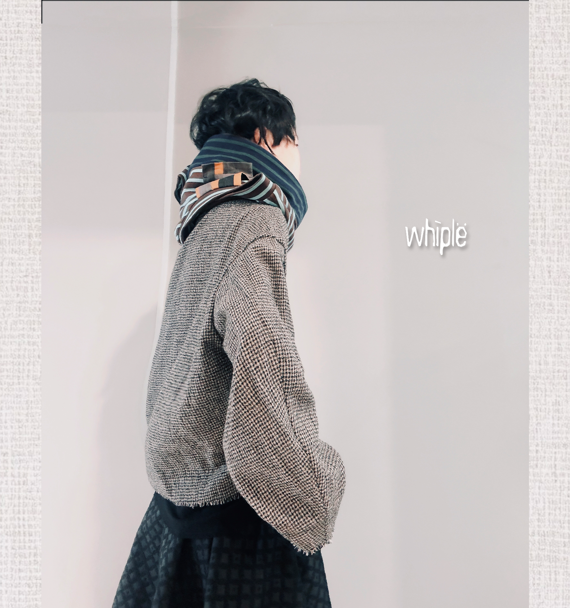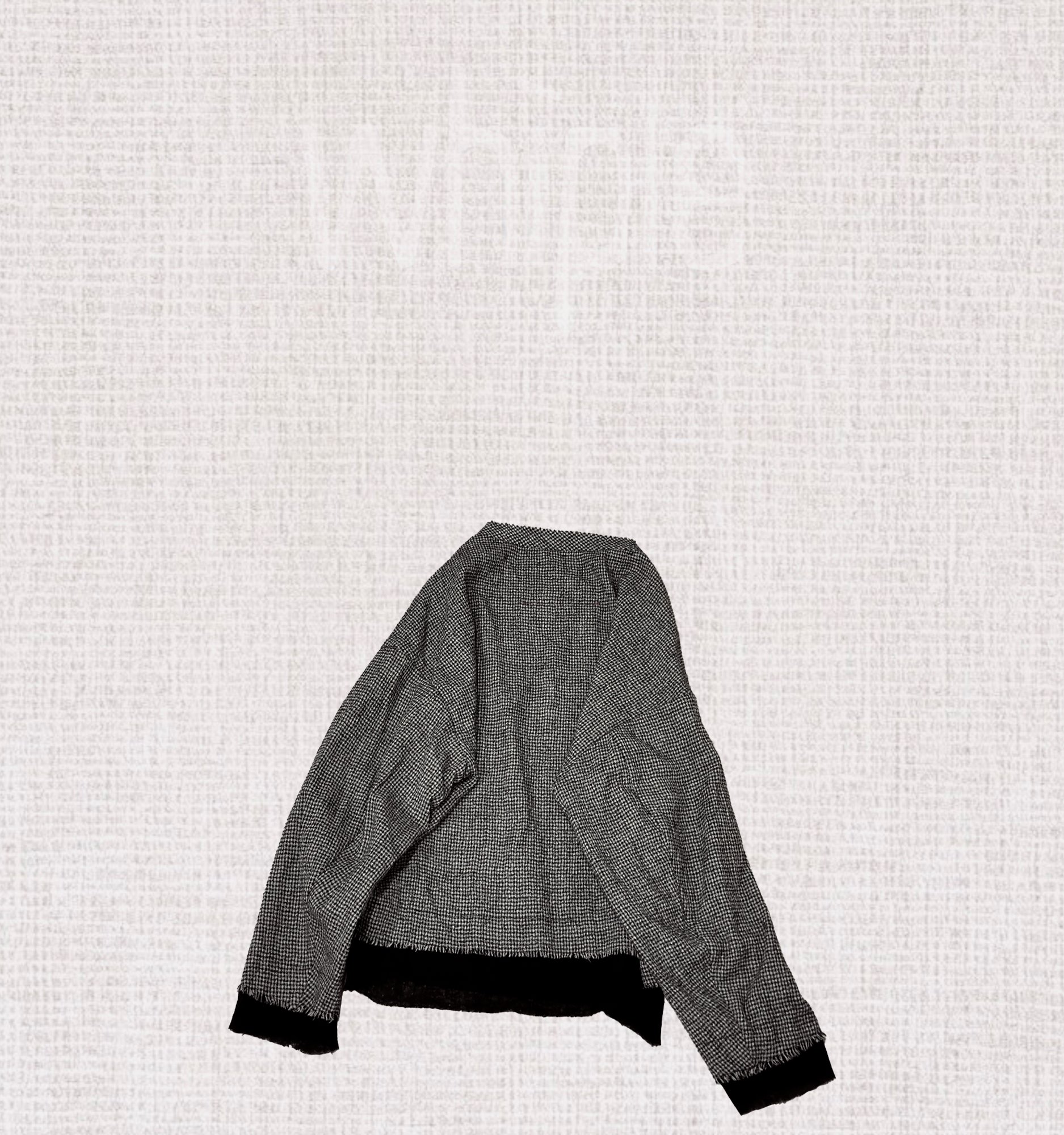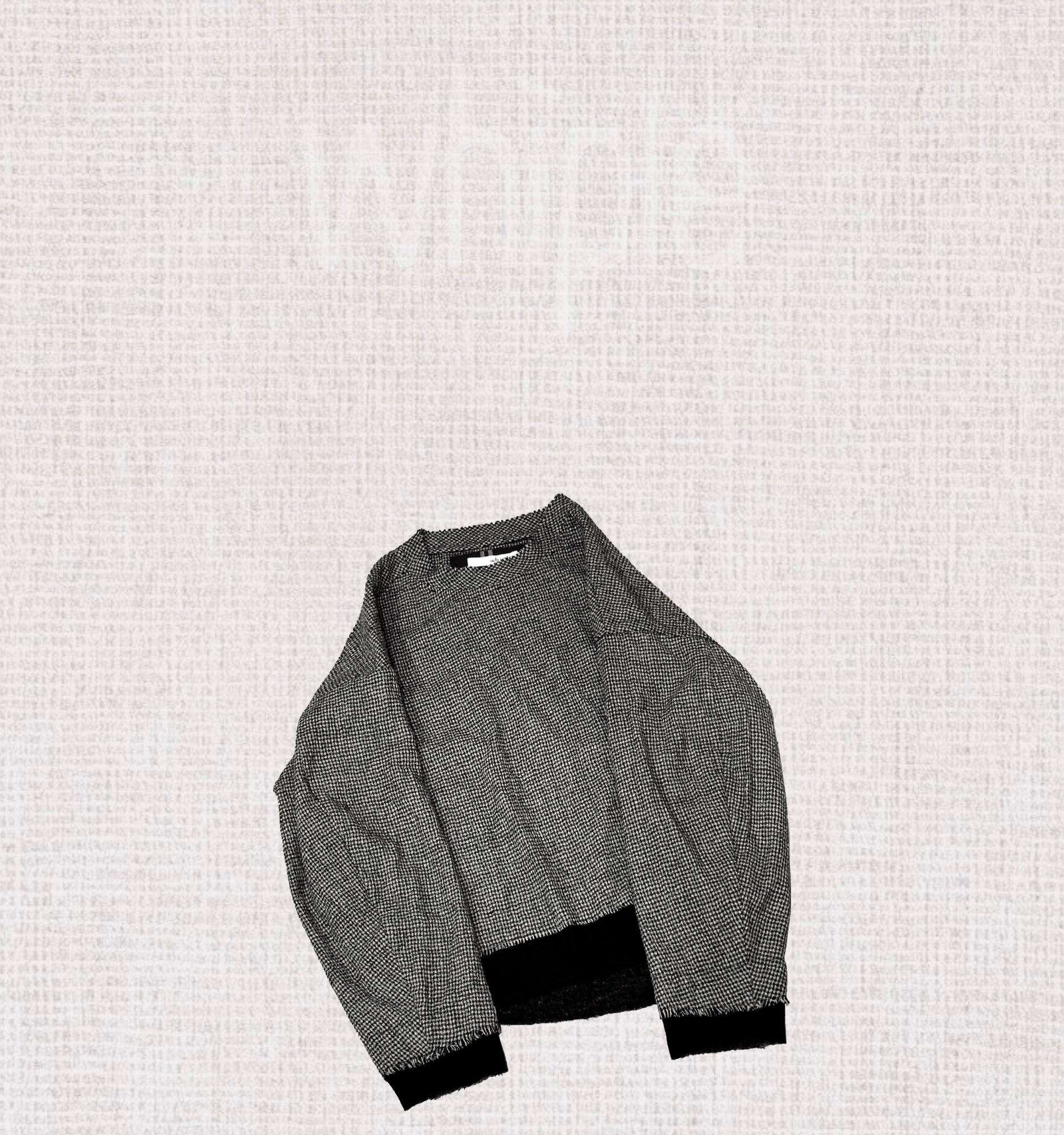 以100%超細羊毛織成千鳥格紋,袖口與下襬拼接素黑羊毛,層次細膩。