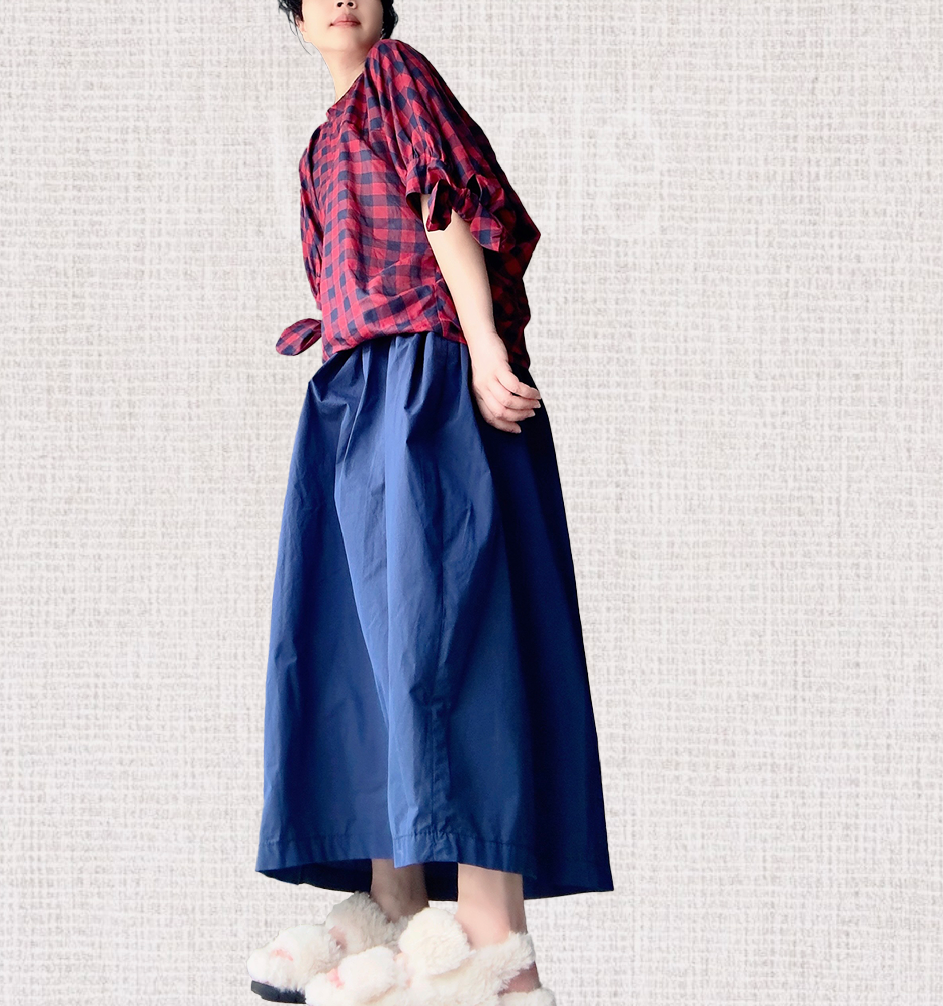 前面手工打活褶再穿入活帶,讓線條整體看起來更有造型,高密度棉布讓手感平順乾爽。