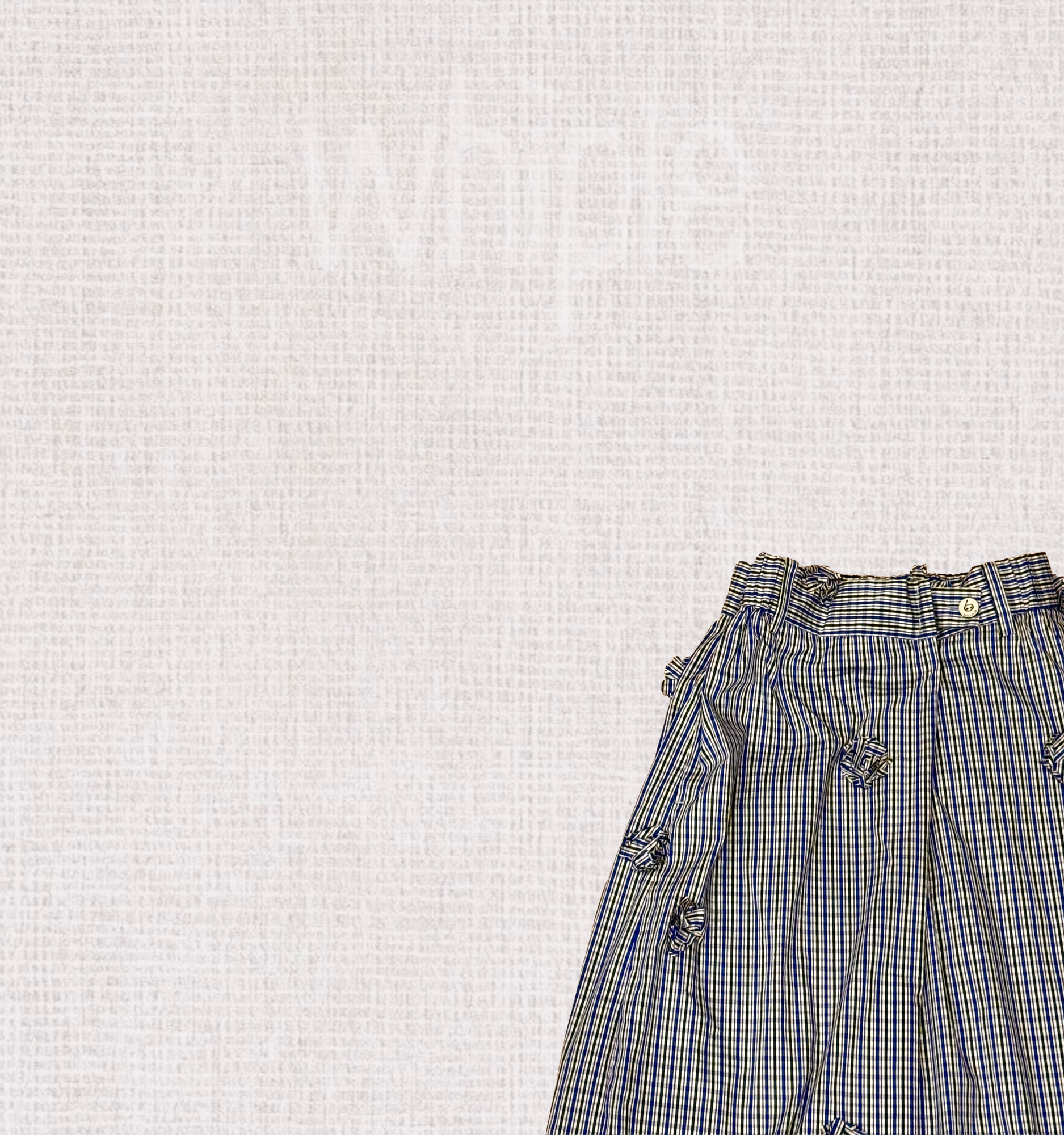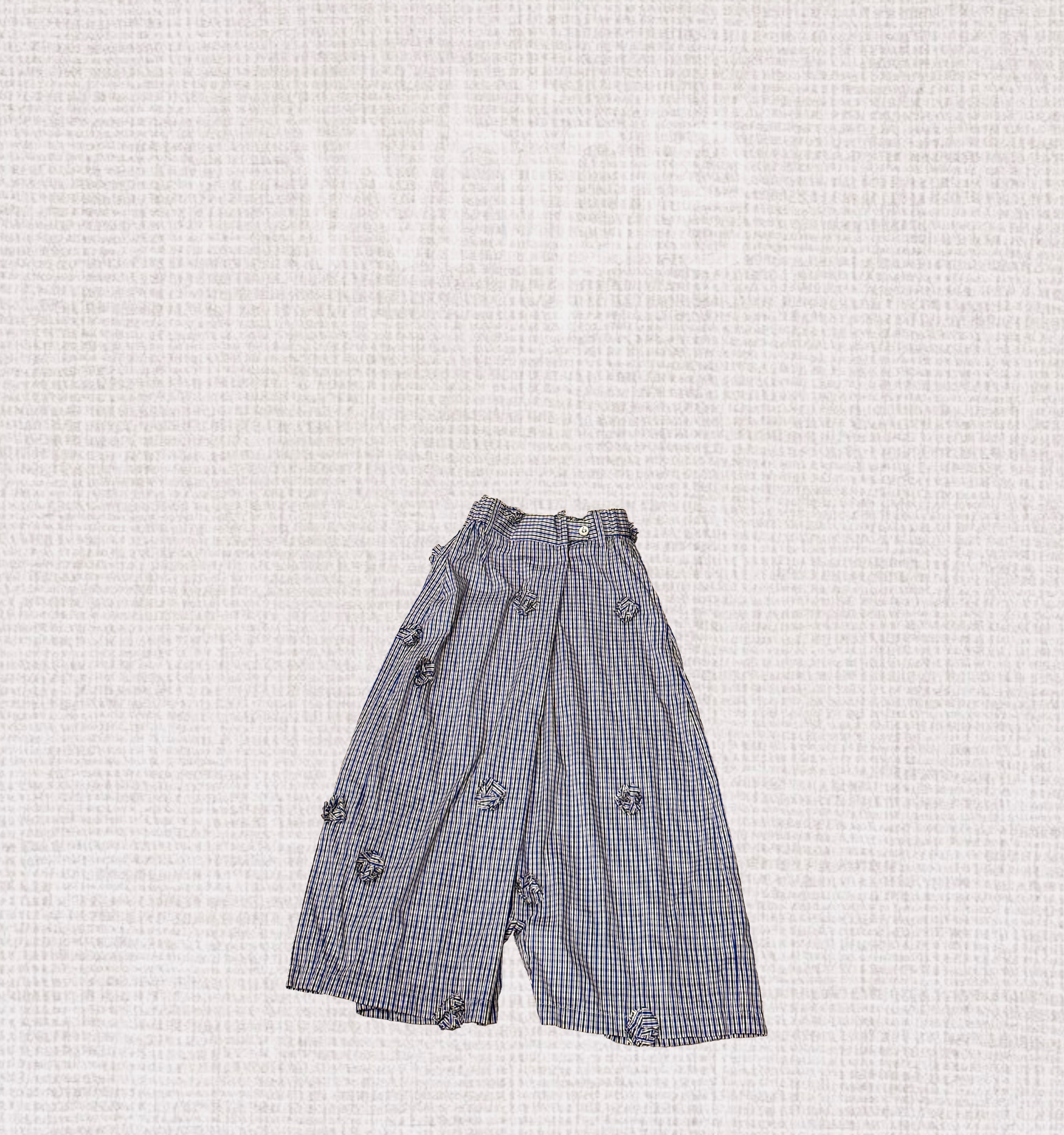 褲身以手工車縫出立體花卉點綴,為低調格紋注入藝術感與精緻細節,展現獨特氣質。