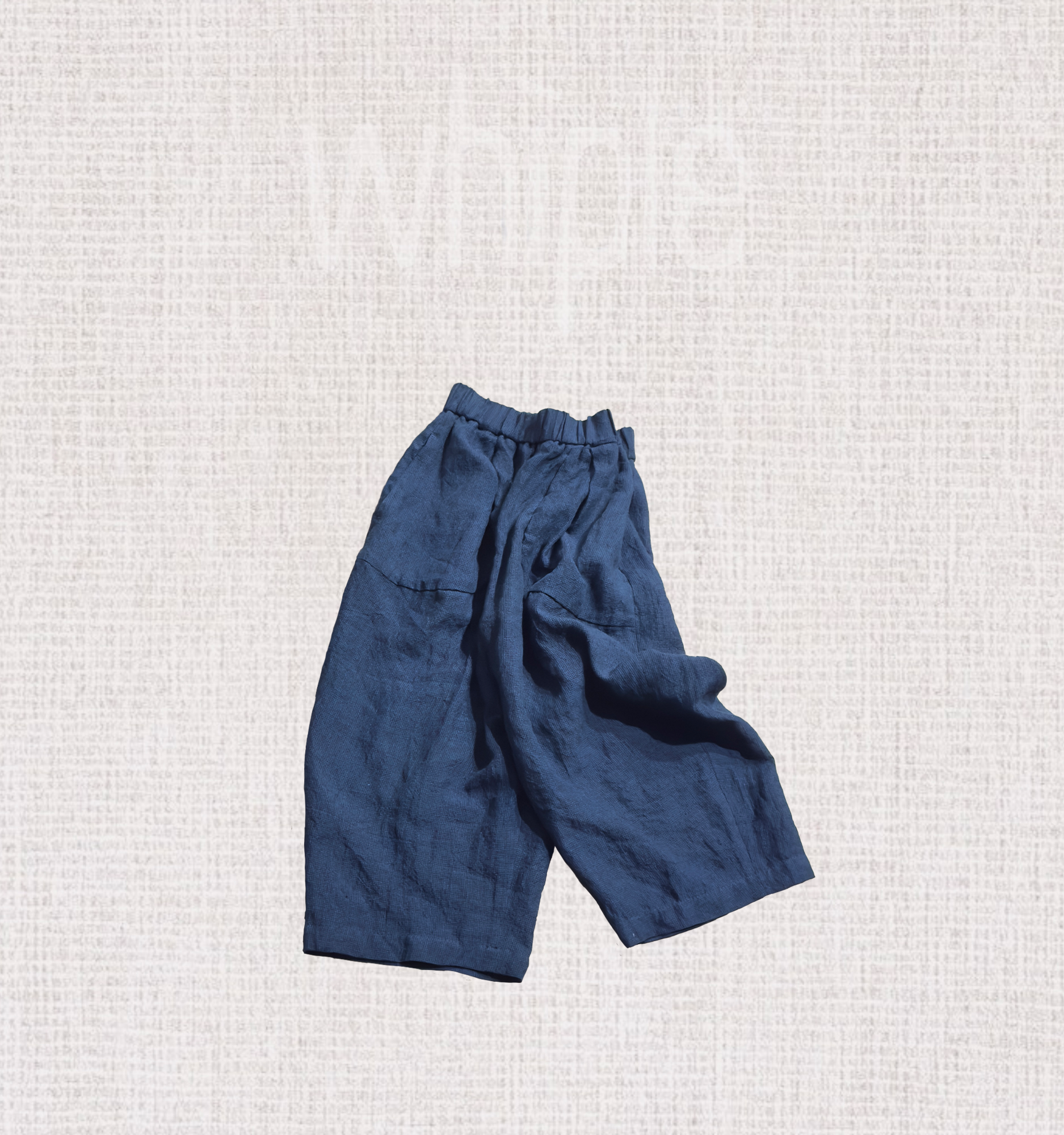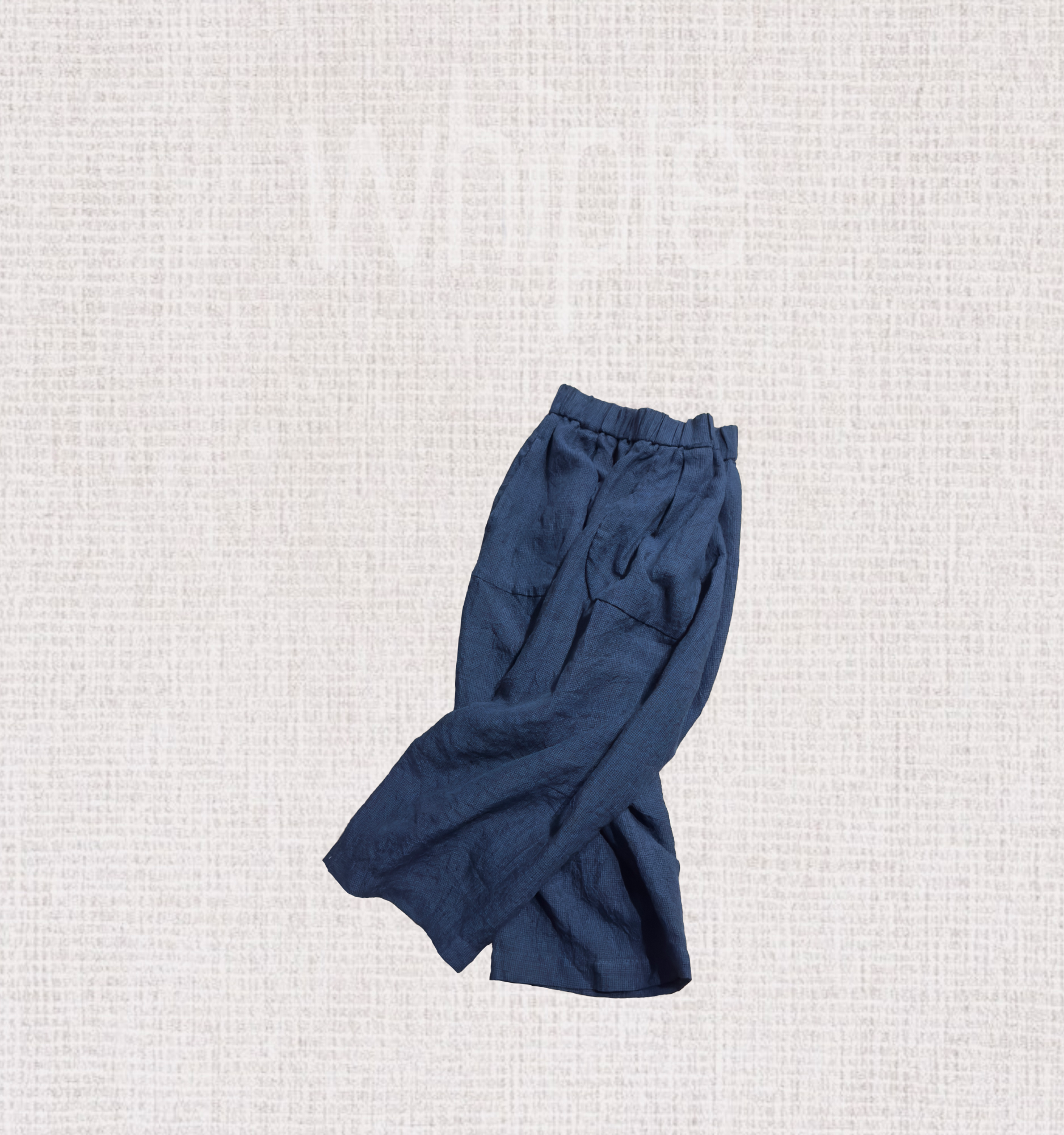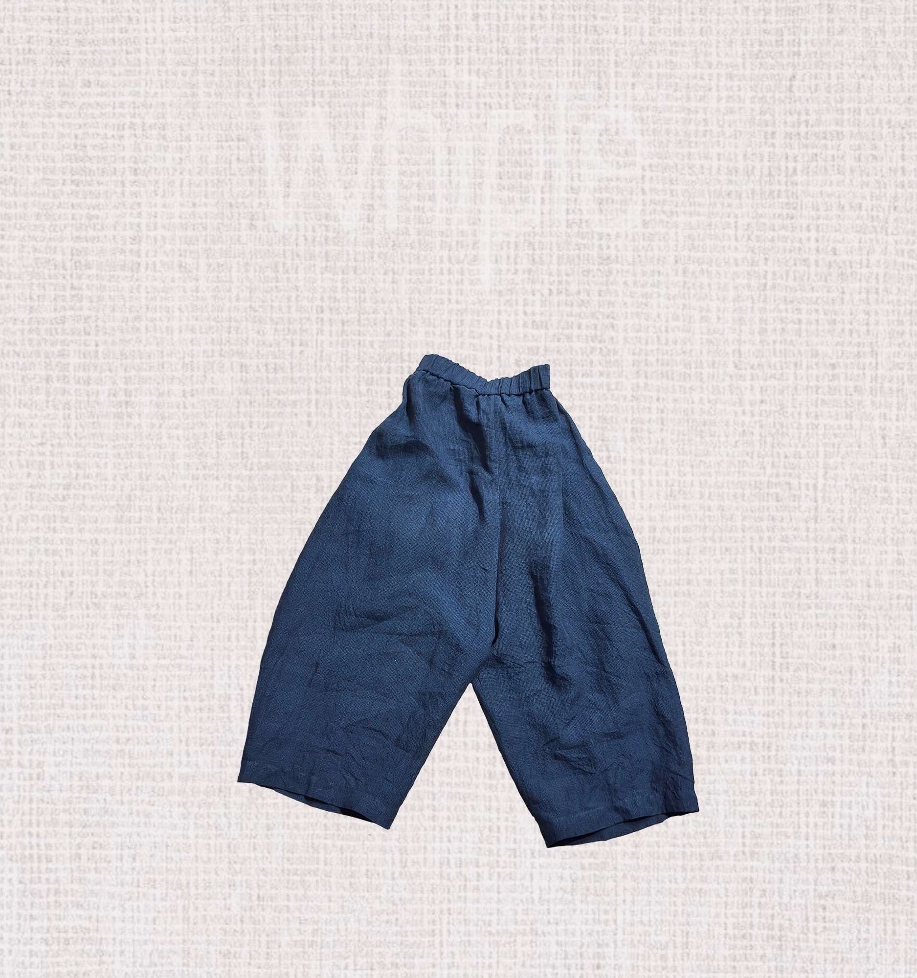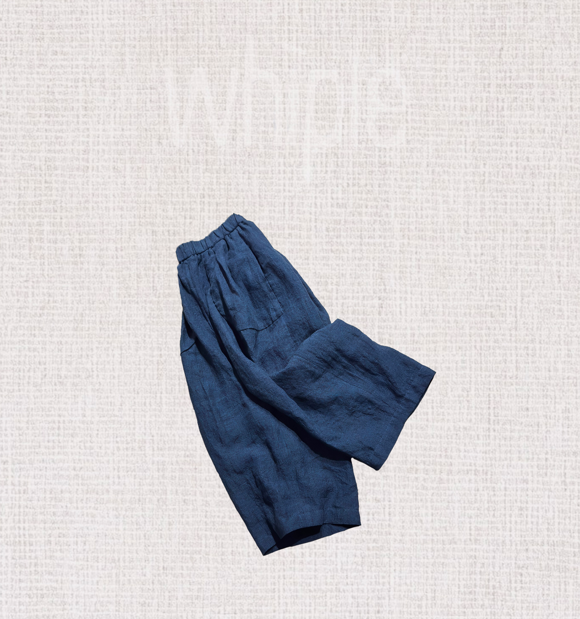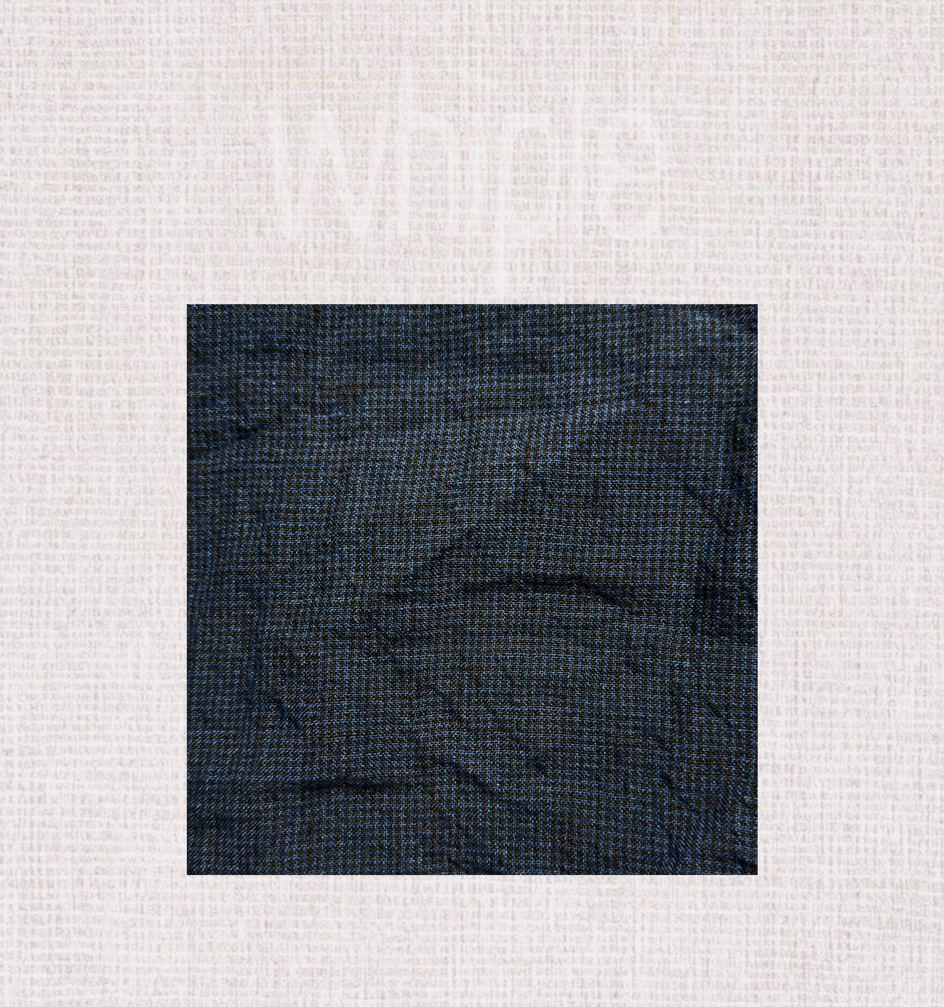 以100%亞麻織就細緻千鳥格紋,深藍與縹色交錯交織,呈現層次分明的質感。