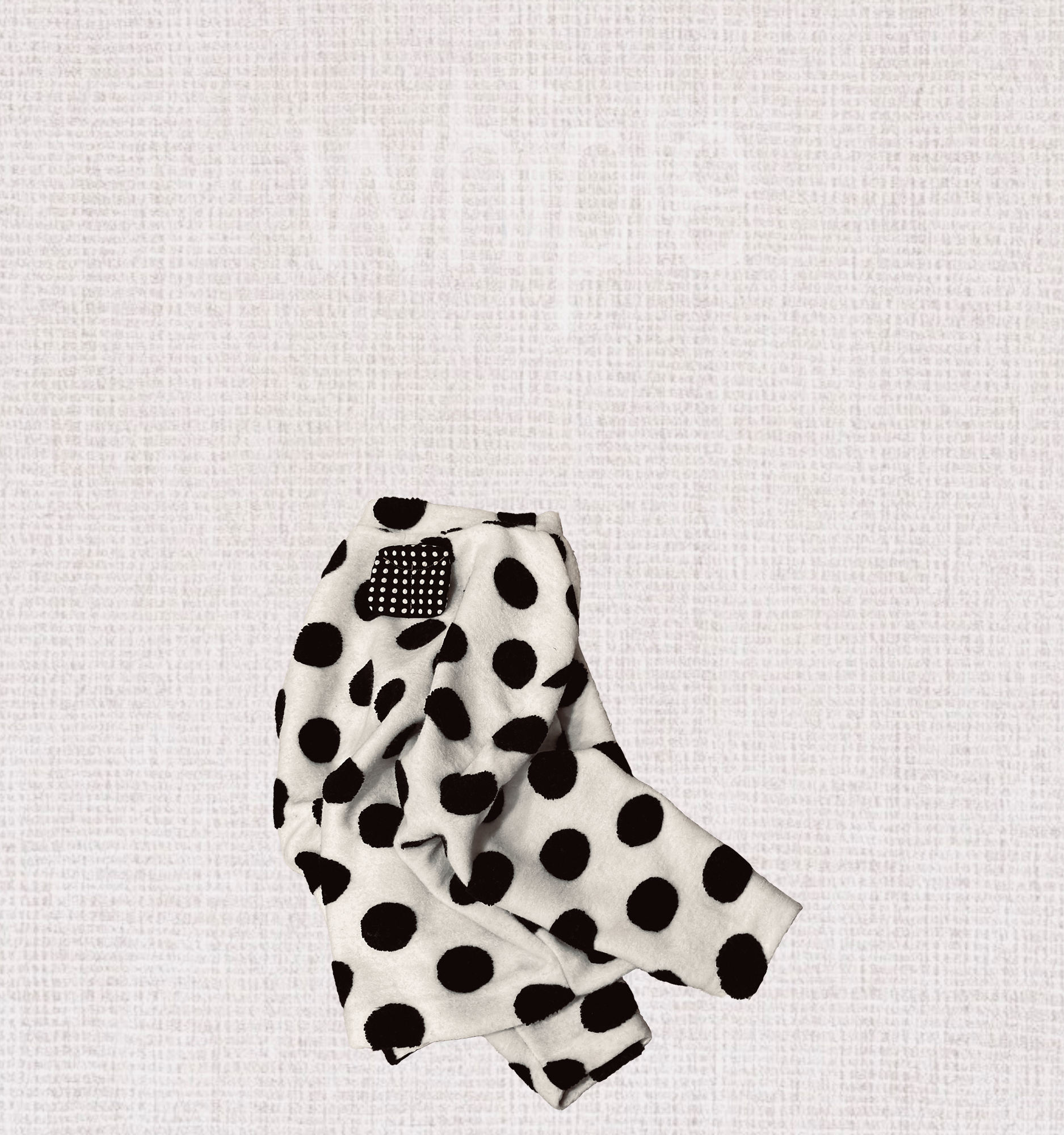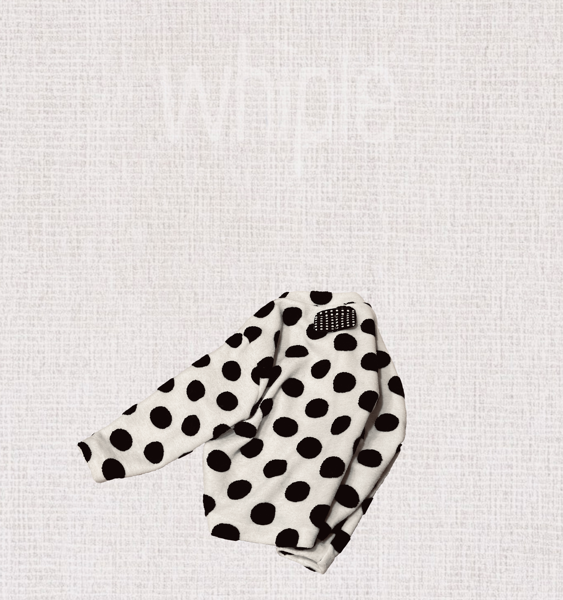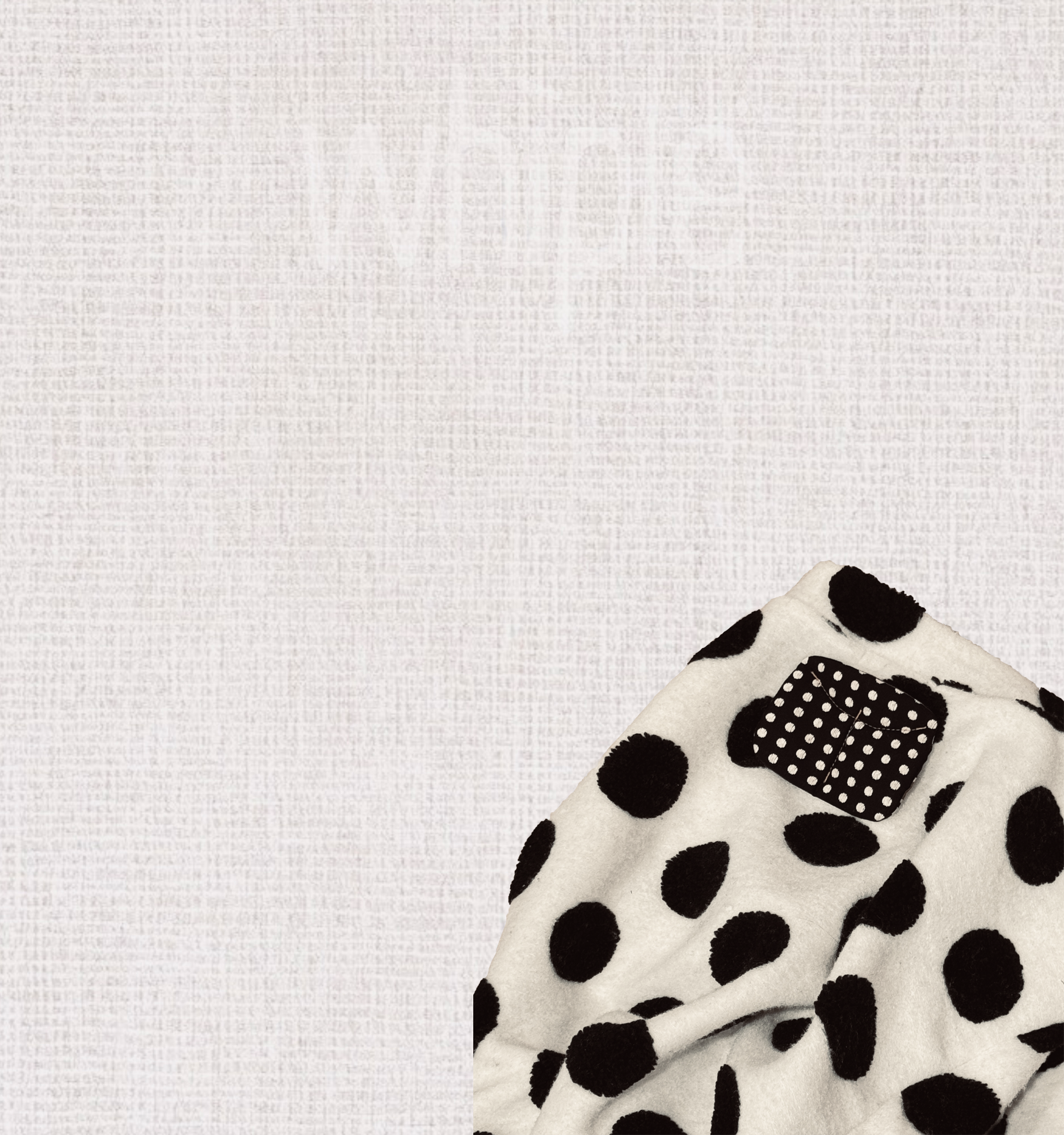 柔軟的毛毛布料,白底上點綴著自然散落的黑色圈圈,就像輕輕落在雪地上的小小足跡。