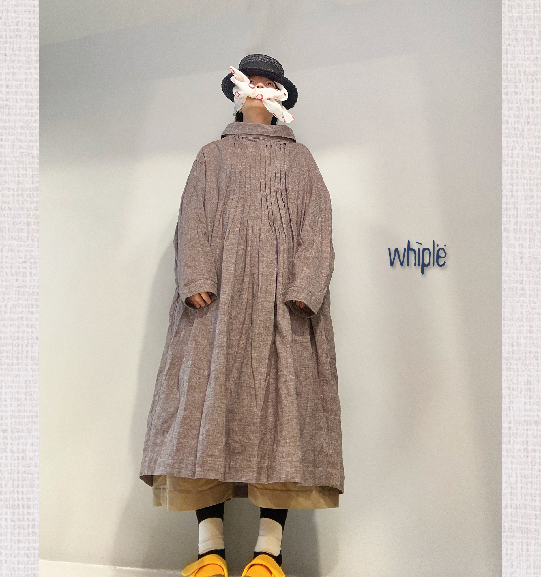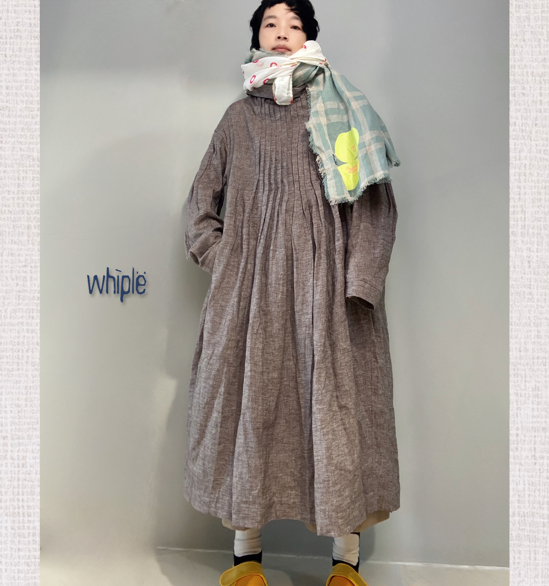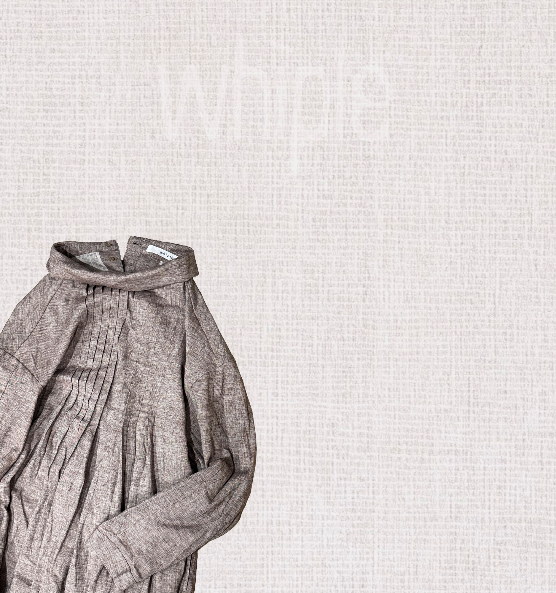 一字活片領搭配細密平達克活褶,讓視覺自然集中於線條與結構。